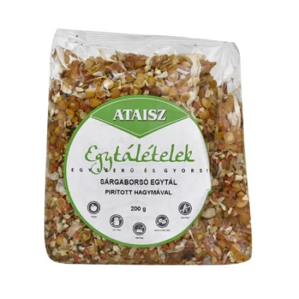 sárgaborsó (Ukrajna), szárított sárgarépa, peszternák (EU), pirított, szárított hagyma (Kína), petrezselyem (EU).