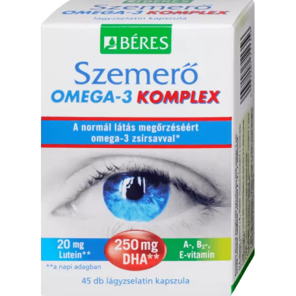 A Béres Szemerő+Omega3 kapszula olyan étrend-kiegészítő, amely támogatja a látást és hozzájárul a szem egészségének megőrzéséhez. Omega-3 zsírsav tartalma segíthet a gyulladás csökkentésében és a szív- és érrendszeri egészség fenntartásában is.