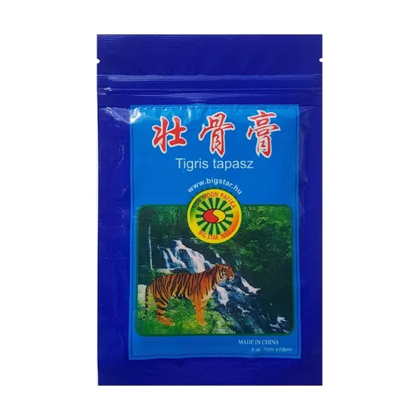 A Big Star Tigris Tapasz illóolajokkal és gyógynövény kivonatokkal átitatott fájdalomcsillapító tapasz. Javítja a keringést a problémás területen, csökkenti a fájdalmat és a gyulladást. Derék, hát, váll, térd és könyök fájdalom esetén is hasznos, ízületi gyulladásokra, ízületi fájdalmakra is jótékony.