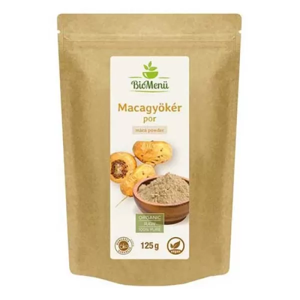 A Biomenü bio maca-gyökér por természetes úton tartja karban egészségünket, energetizál, és fokozza a fizikai teljesítményt. Az Andok szuperételének nevezett maca népszerű a perui Andok őslakosai körében.