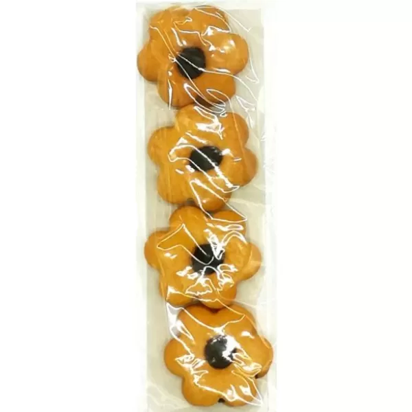 A virágok átmérője kb. 6,5 cm. Egy csomag 4 db lekvárral töltött margarétát tartalmaz.