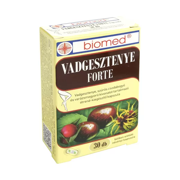 Vadgesztenye, szúrós csodabogyó és varázsmogyoró kivonatot tartalmazó étrend-kiegészítő kapszula.