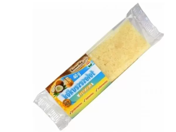 Bonetta kókuszszelet mézes 40 g. Finom, egészséges, 100%-ban természetes összetevőkből készült glutén, tej és szójamentes csemege gyerekeknek és felnőtteknek egyaránt. A nap 24 órájában fogyasztható, munka, szórakozás, sportolás, vagy akár utazás közben. Kiváló uzsonna a táskában. Mézzel készült.