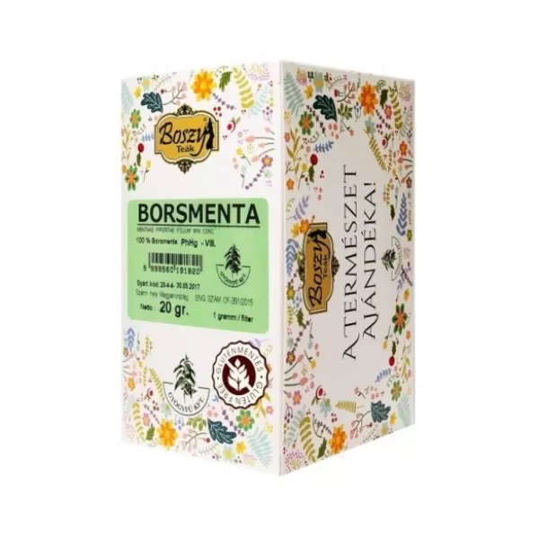 Boszy borsmenta tea, 20x1g (20 g) kiszerelésben, aromazáró csomagolásban.