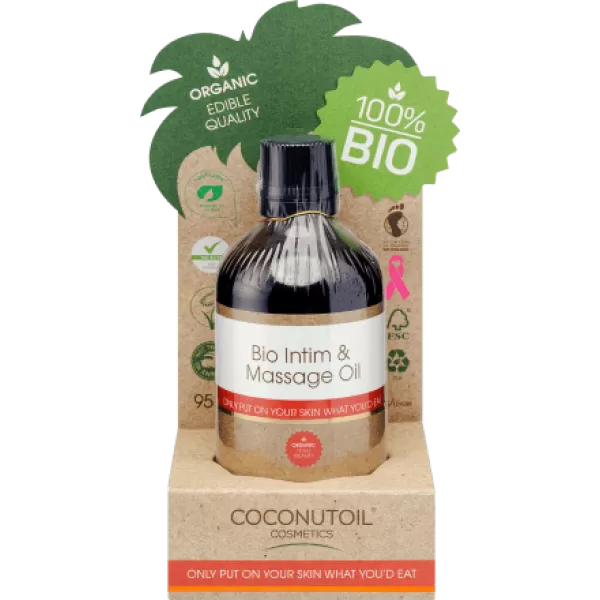 Organikus, ehető minőségű összetevőket tartalmazó Intim és Masszázs Olaj, ami természetességével, ehető minőségével, a Cocos Nucifera Oil antibakteriális-, fertőtlenítő- és gombaölő tulajdonságával egyedülálló a maga nemében.