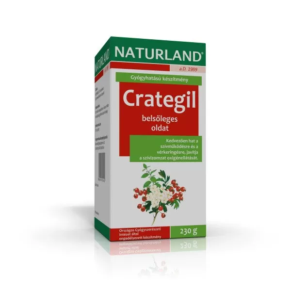 230 g oldatban: 178,71 g Crategil kivonat [galagonya virágos hajtásvég (Crataegi folium cum flore), galagonyatermés (Crataegi fructus), feketeribizli-levél (Ribes nigri folium), orvosi citromfű leveles szár (Melissae herba) vörösboros alkoholos kivonata], 0,46 g kálium-aszparaginát (Kalium aspartas), 0,23 g magnézium-aszparaginát (Magnesium aspartas).