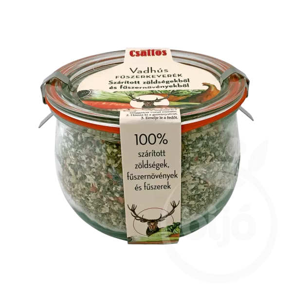 A Csattos Vadhús Fűszerkeverék 230 g-os kiszerelés az ideális megoldás, ha szeretnéd emelni az étkezéseid színvonalát. A különböző fűszerek harmonikus kombinációja nemcsak a vadhús zamatát fokozza, hanem különféle zöldségekhez és köretekhez is remekül illeszkedik.