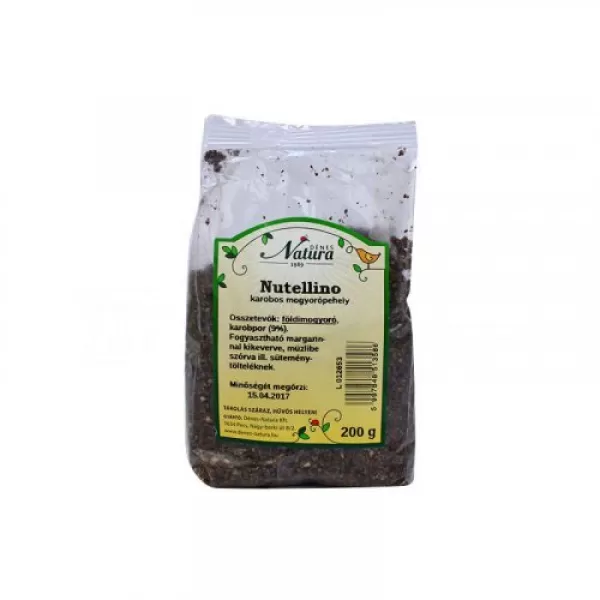 NATURA NUTELLINO A hőkezelt blanchírozott földimogyorót finomra őrlik és mindennemű adalék nélkül hozzákevernek karob (vagy másnéven szentjánoskenyér) port. Ez közvetlenül fogyasztható, mintha száraz csoki lenne.