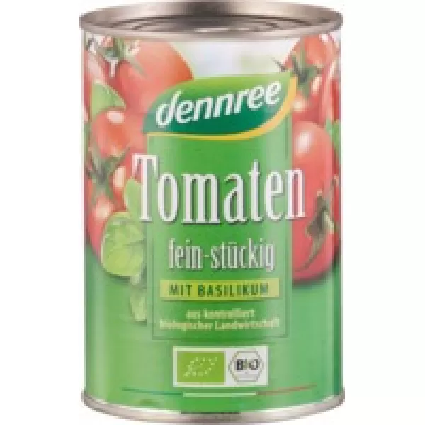 kockára vágott paradicsom * (98%), paradicsomlé *, szárított bazsalikom * (0,2%), nádcukor, tengeri só.