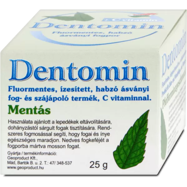 Garatgyulladás, vagy nátha tüneti kezeléséhez 1 dl vízből és 1 teáskanál Dentominból készített szuszpenzióval gyakori száj-öblítés és gargalizálás ajánlott.