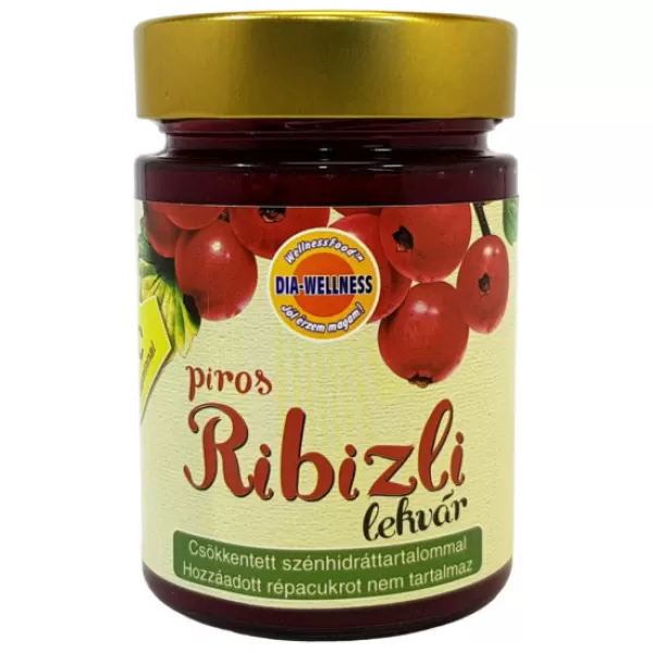 A Dia-Wellness csökkentett szénhidráttartalmú, inulinnal édesített, magas gyümölcstartalmú pirosribizli lekvár.