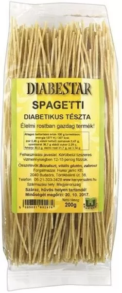 A Diabestar csökkentett szénhidráttartalmú tészta ideális választás cukorbetegek és fogyókúrázók számára. A termék szénhidrát-tartalma 50%-kal csökkentett, emellett élelmi rostokban gazdag.
