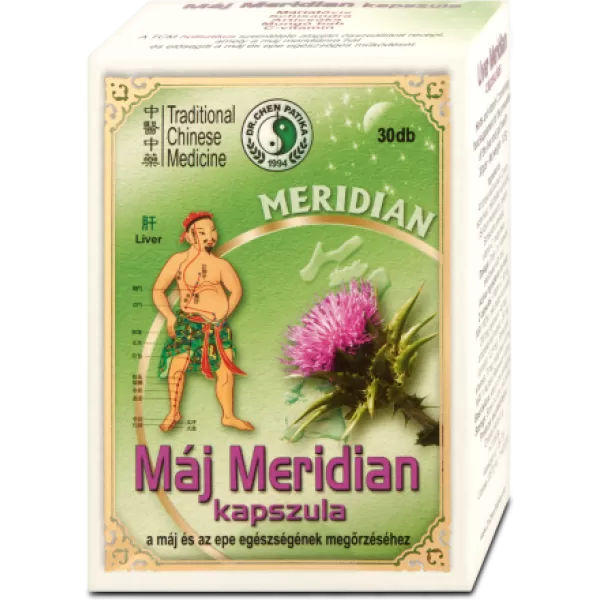 A máj meridián kapszula a máj és az epe egészségét támogató gyógynövények és C-vitamin felhasználásával készült. A fejlesztés során a Hagyományos Kínai Orvoslás (TCM) tapasztalatai mellett a kutatók felhasználták az európai népgyógyászat és a modern kori orvoslás tudományos eredményeit is. A máriatövis gyümölcse (hatóanyaga: szilimarin) (Császár) segítheti a megfelelő májfunkció fenntartását, ezzel a szervezet számára toxikus anyagok eltávolítását.