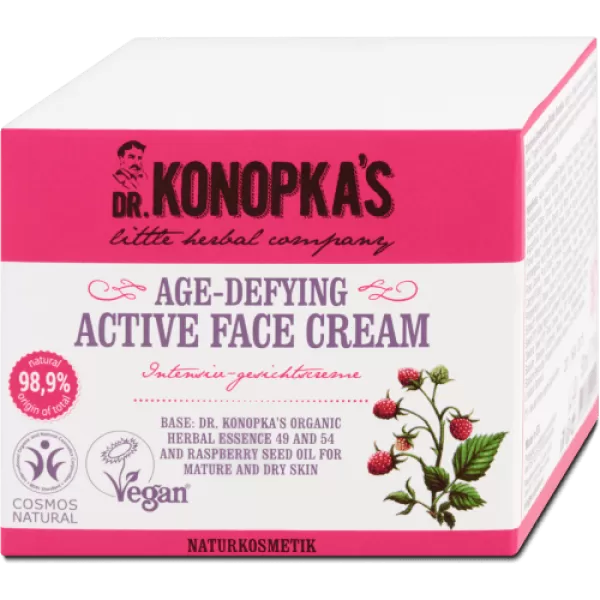 Dr. Konopka 49. és 54. számú speciális gyógynövény-eszenciáját tartalmazza. Vitamin- és ásványianyag-tartalma extra táplálást és hidratálást nyújt az érett és száraz arcbőrnek, és megelőzi a bőr öregedési folyamatát. A málnakivonat stimulálja a regenerációt és helyreállítja a bőr energiájának egyensúlyát, feszes és rugalmas bőrt eredményez.