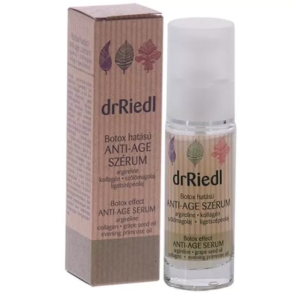drRiedl ránctalanító hatású anti-age szérum argireline, kollagén, szőlőmagolaj és ligetszépeolaj tartalommal.
