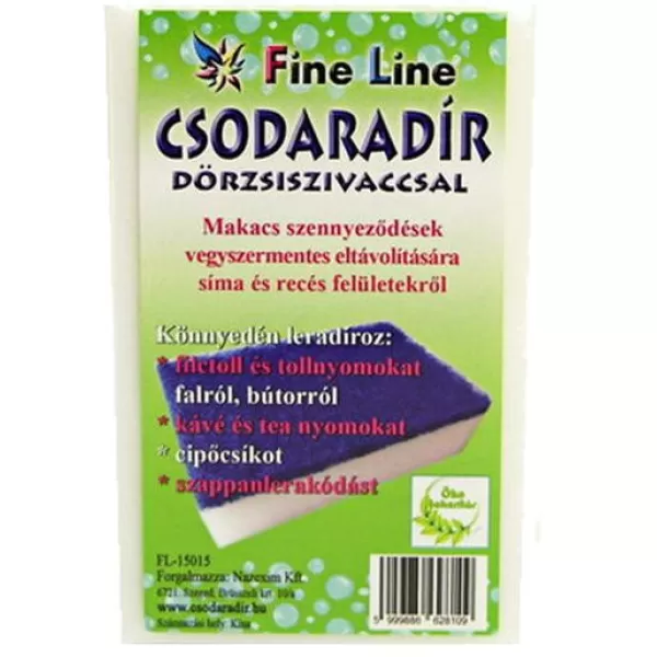 Termékünk: melaminból készült ökoszivacs. A melamin egy olyan polimer, amely vízzel érintkezve icipici méretű, üveg keménységű szemcsékké alakul, így kíméletesen távolít el szinte minden szennyeződést.