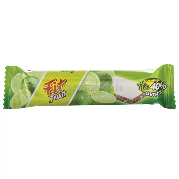 Fit Fruit müzli szelet összetevői: gyümölcs 50 % (alma, mazsola, lime darabok 15 % /gyümölcs koncentrátum, fruktóz-glükóz szirup, cukor, zabrost, rizskeményítő, növényi zsír, zselésítő anyag (pektin), természetes aroma/, ananász /ananász, cukor, sav: citromsav, tartósítószer: kén-dioxid/), glükóz szirup, zab, extrudált kukorica, napraforgó, növényi zsír, ostya (burgonyakeményítő, növényi olaj), emulgeálószer (szójalecitin), aroma.