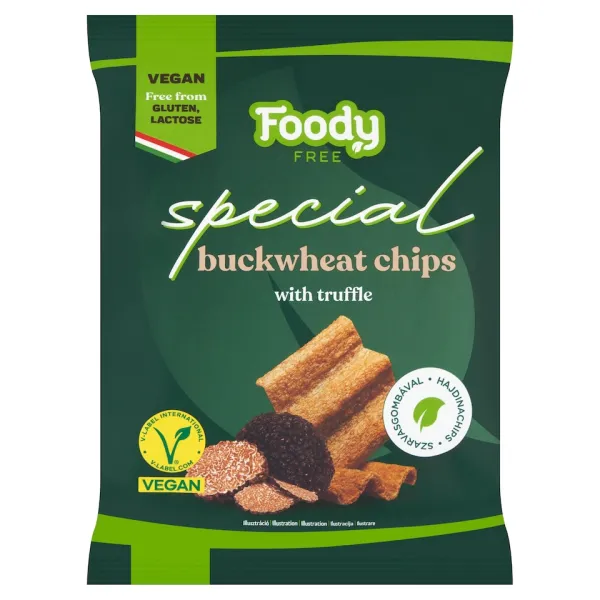 Érdemes kipróbálni a Foody Free gluténmentes hajdina chipsét, amely szarvasgombával ízesített. A chips különlegessége a hajdina, amely egészséges alternatívát kínál a hagyományos snackekkel szemben.