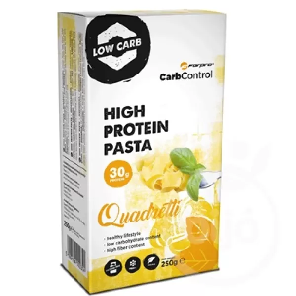 Fopro® CarbControl a hagyományos tészta kalóriaszegény alternatívája. Csökkentett szénhidrát és extra magas protein tartalmú száraztészta, cukorbetegek és fogyni vágyók számára is.