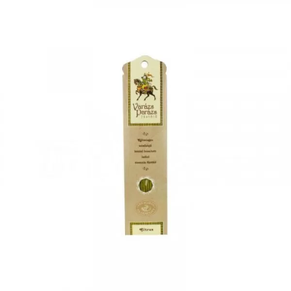 A Citrus kiváló frissítő hatású, enyhén fűszeres illat. Varázs Parázs füstölőink a gondos válogatás eredményeként kizárólag természetes anyagokat tartalmazó minőségi termékek. Füstölőinket a legnemesebb virágolajokból, gyógyfüvekből és fűszerekből kézzel gyúrják, aromaterápiás hatásuk is kiváló. Természetes hatóanyagaik pozitívan hatnak az emberi pszichére és elősegítik a relaxációt, valamint a kiegyensúlyozott lelkiállapot elérését. Kellemes illatuk közömbösíti a dohányfüstöt, távol tartja a szúnyogokat.