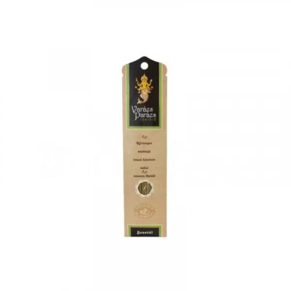 A Szantál a klasszikus füstölőillat valódi szantálfából. Varázs Parázs füstölőink a gondos válogatás eredményeként kizárólag természetes anyagokat tartalmazó minőségi termékek. Füstölőinket a legnemesebb virágolajokból, gyógyfüvekből és fűszerekből kézzel gyúrják, aromaterápiás hatásuk is kiváló. Természetes hatóanyagaik pozitívan hatnak az emberi pszichére és elősegítik a relaxációt, valamint a kiegyensúlyozott lelkiállapot elérését. Kellemes illatuk közömbösíti a dohányfüstöt, távol tartja a szúnyogokat.