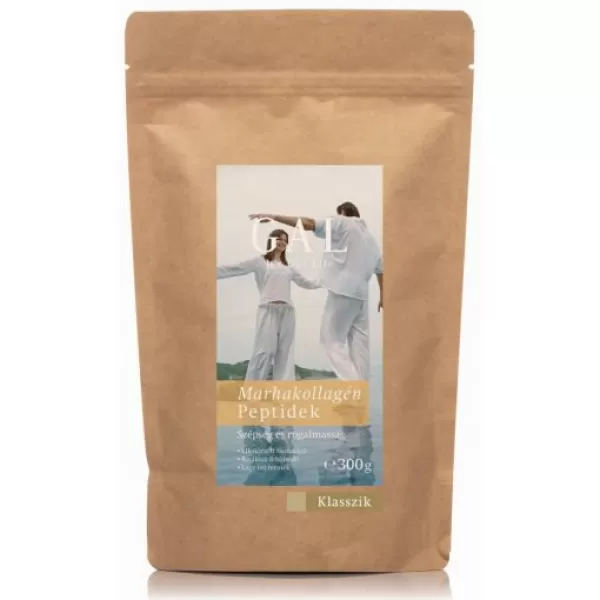 Gal marhakollagén peptidek 300g Kötőszövet-támogató előemésztett kollagénfehérje legelőn tartott, füvet legelő szarvasmarhákból. E kollagénünk jótékony hatásai, fogyasztásának élettani előnyei nem különböznek a sertéskollagénünkéitől, ezért az alábbi leírás sem hordoz különbségeket. Fontos azonban kiemelnünk, hogy marhakollagén-alapanyagunk kizárólag legelőn tartott, füvet legelő szarvasmarháktól, kíméletes állattartásból származik.