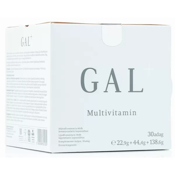 A GAL+ Multivitamin csomag 60+30+italpor 30 adag (Vízoldékony összetevők 2 kisebb kapszulában a korábbi 1 nagy helyett, amely a teljes emésztőrendszeri nyugalmat segíti elő. Továbbiakban a Kolin-cseppek külön termékben találhatóak meg a szabadabb adagolhatóságért.)