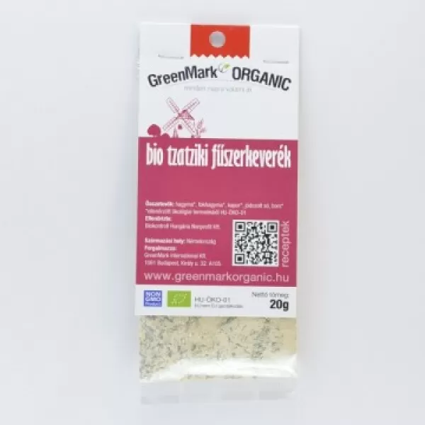 Felhasználási javaslat: A tzatziki salátaöntet port elkeverünk 1 pohár joghurttal. Ezután 1-2 kígyóuborkát durvára reszelünk, vagy vékony csíkokra gyalulunk. Enyhén sózzuk meg és hagyjuk, hogy levet eresszen, majd alaposan kinyomkodjuk az uborka levét, elkeverjük az öntettel és hűtőbe tesszük amíg az ízek összeérnek.