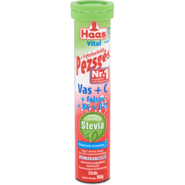 Vasat, C-vitamint, folsavat, B6- és B12 vitaminokat tartalmazó vérnarancsízű cukormentes pezsgőtabletta édesítőszerrel. Étrend-kiegészítő készítmény.