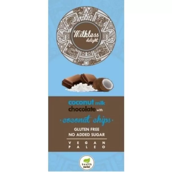 Health market paleo milkless delight csokoládé kókusztejes, kókuszchipsszel édesítőszerrel 80 g