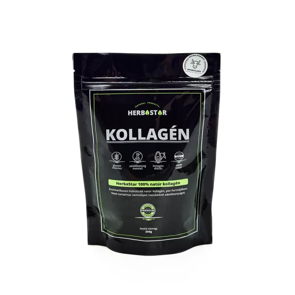 Enzimatikusan hidrolizált kollagén por formájában (marha kollagén). Szürkés-fehér por, semleges íz, natúr illat, műanyag szerkezetű talpas tasak, simítózárnak köszönhetően felbontás után egyszerűen visszazárható.