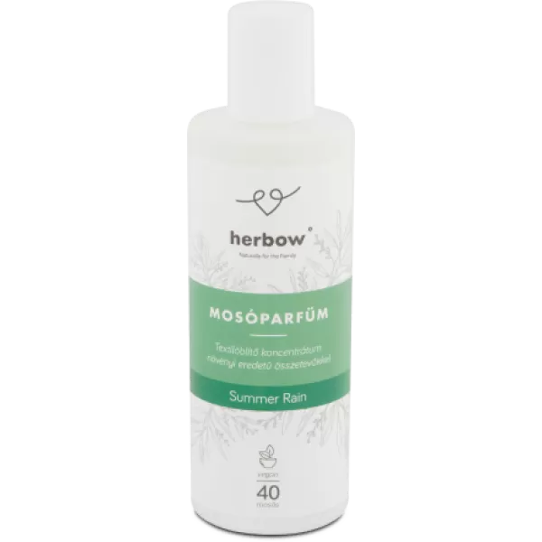 A Herbow mosóparfüm nyári eső illatú textilöblítő egy növényi bázisú, szuperkoncentrátum, amely a frissítő nyári záporok áztatta kamilla mezők üde, mámoros illatát idézi. Ez a termék nemcsak illatosít, hanem növényi eredetű textil kondicionáló és lágyító anyagokat is tartalmaz, amelyek környezetbarát és egészséges alternatívái a hagyományos vegyi öblítőknek.