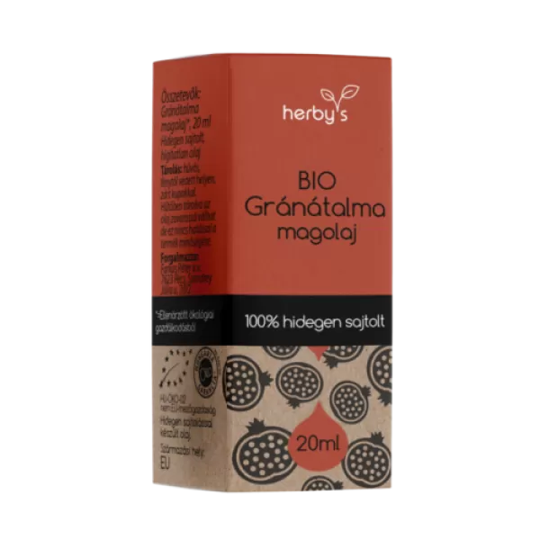 A gránátalma magjából, hidegen sajtolással állítják elő az értékes magolajat, mely gazdag antioxidánsokban, valamint a szervezet számára nélkülözhetetlen, telítetlen zsírsavakban és A-, B1-, B2-, C-, E- és K-vitaminokban. Emellett jelentős az ásványi anyag (Foszfor, Kalcium, Kálium és Vas), valamint a fitoösztrogén tartalma is. A telítetlen zsírsavai közül kiemelendő a punicinsav, mely jelentős mennyiségben található meg a gránátalmamag olajban. A punicinsav kimagasló antioxidáns, illetve gyulladáscsökkentő hatású. Értékes tápanyagai teszik a gránátalmamag olajat egyedülálló haj- és bőrregeneráló, valamint immunerősítő tulajdonságúvá. Más gránátalma magolajjal ellentétben, termékünket belsőleg is fogyaszthatod!