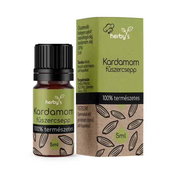 A Herbys kardamom fűszercsepp 100% természetes összetevőkből készült, és ideális választás ízesítéshez. A 5ml-es kiszerelés praktikus, lehetővé teszi a pontos adagolást.