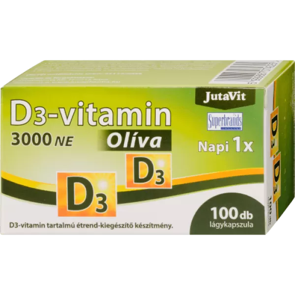 A D-vitamin a zsírban oldódó vitaminok családjába tartozik. A JutaVit D3-vitamin 3000 NE Olíva, a D-vitamint extra szűz olívaolajban oldott formában tartalmazza. A D-vitamin hozzájárul a kalcium és foszfor normál felszívódásához/hasznosulásához, a vér normál kalciumszintjéhez, az egészséges csontozat és izomfunkció fenntartásához. Hozzájárul a normál fogazat fenntartásához és az immunrendszer normál működéséhez. A D-vitamin szerepet játszik a sejtosztódásban.