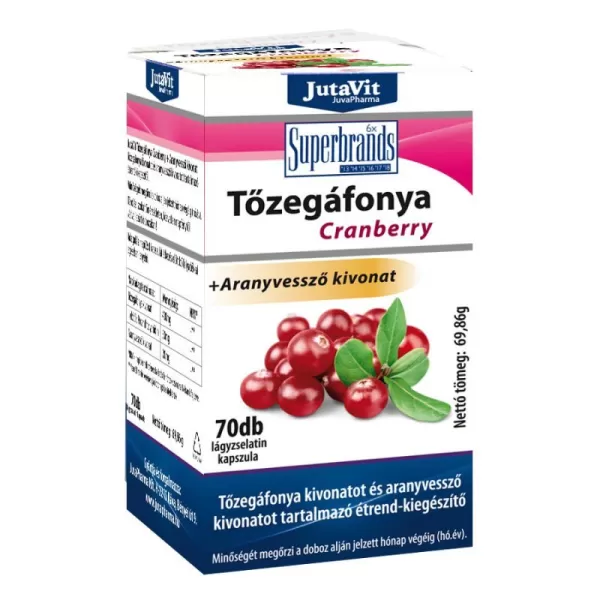 napraforgóolaj, tőzegáfonya kivonat, zselatin, nedvesítőszer (glicerin), tisztított víz, színezékek (vörös vas-oxid, titán-dioxid). A Jutavit Tőzegáfonya és aranyvesszőfű kivonatot tartalmazó étrend-kiegészítő terméke kiválóan ötvözi a tőzegáfonya és az aranyvessző jótékony hatásait.