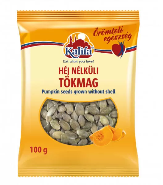 A Kalifa natúr héj nélküli tökmag 100g-os kiszerelésben kapható. Az olajos magvak telítetlen zsírsavakban, illetve rostban gazdagok és hozzájárulnak a szervezet nyomelem- és vitamin szükségletének kielégítéséhez.