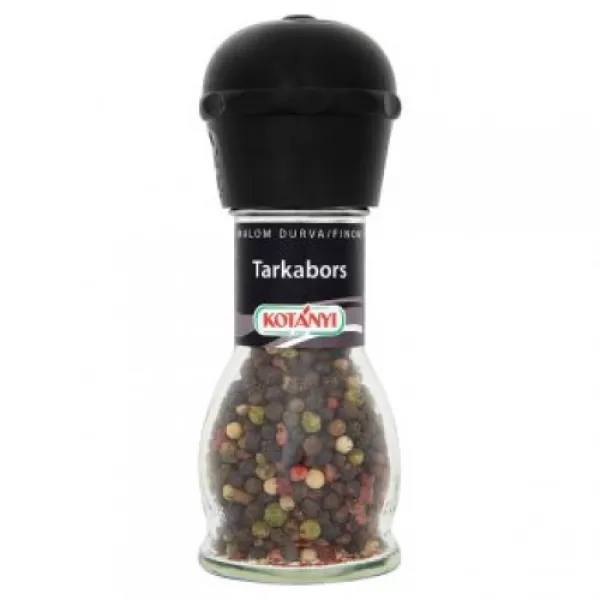 "A KOTÁNYI Tarkabors az a keverék, amivel az aromás, pikáns, borsos íz a legharmonikusabban elérhető. A négyféle bors íze különböző, de egymást tökéletesen kiegészítve összhangot alkotnak. Harmonikus ízt kölcsönöz grillezett húsoknak, halaknak, salátáknak, leveseknek, szószoknak és burgonyás ételeknek. A termék gluténtartalmú gabonaféléket, tojást, tejet (laktóz), zellert, szóját, mustárt és szezámmagot is felhasználó gyártóüzemben készült. Száraz helyen tartandó.