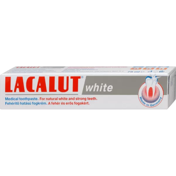 A Lacalut fogkrém White 75 ml-es kiszerelésben kapható, és kifejezetten a fehér fogakért lett kifejlesztve. Ezt a fogkrémet a fogak világosabbá tételére és a foltok eltávolítására tervezték.