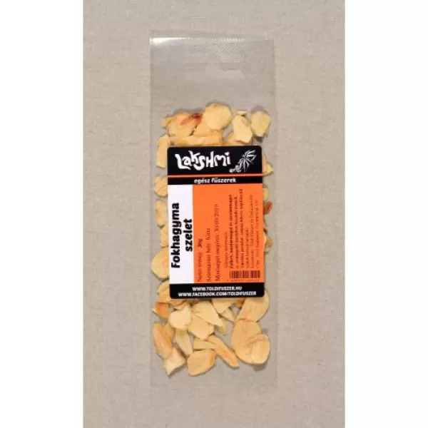 A fokhagyma gerezdek szeletelésével és lassú kíméletes szárításával készül. Erősen fűszeres és/vagy húsos ételehez ajánljuk.