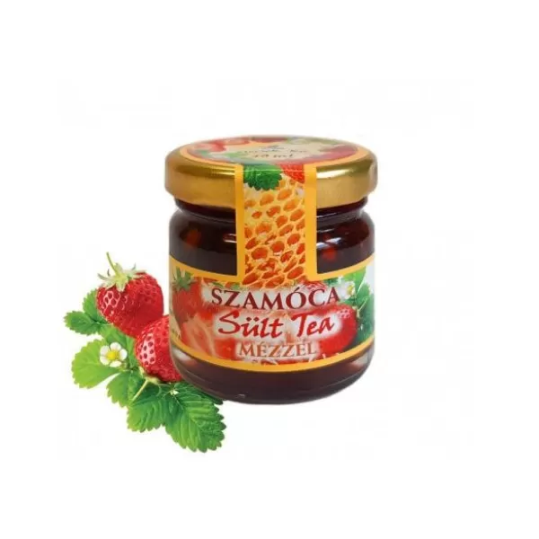 gyümölcs 45% (eper), cukor, víz, méz 3,5%, citromsav, adalékanyag: pektin, aromák: vanília, szegfűszeg, fahéj, eper, színezék, berkenye kivonat