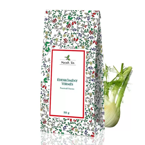 A Mecsek Tea Édeskömény Termés 50g-os kiszerelésben kapható. Az édeskömény (Foeniculum vulgare) egy különleges gyógynövény, amelyet tradicionálisan alkalmaznak fűszerként és gyógyászati célokra.