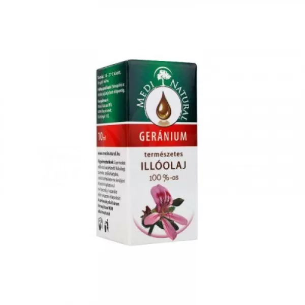 Medinatural illóolaj geránium 10ml, egy intenzív virágillatú, 100%-ban tiszta különlegesség. Könnyed, lágyan rózsás édes illatával enyhítheti a szorongást, félelmet és a feszültséget. Nyugtató és antidepresszáns hatásai révén jókedvre derít és energikussá tesz.