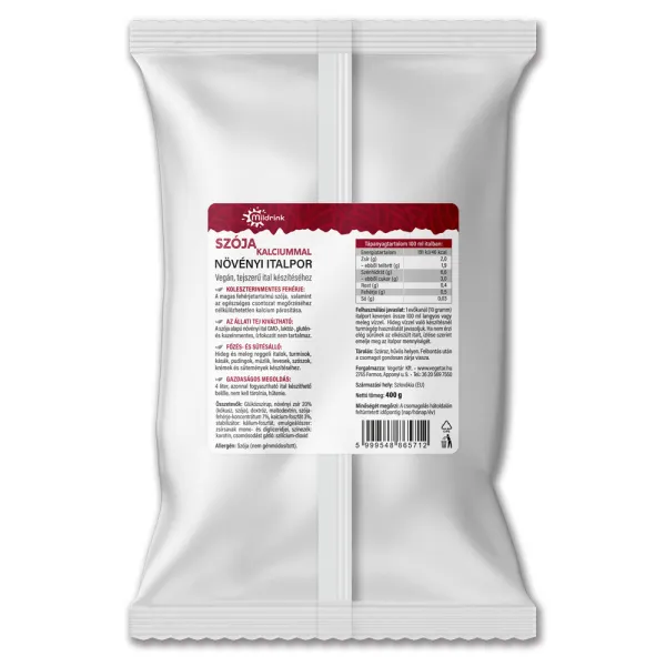 A MILDRINK instant szójaitalpor összetétele miatt ideális választás gluténmentes diétát folytatók és laktózallergiások számára. 400 g porból akár 4 liter italt is előállíthat, ezáltal csökkentve a hulladékképződést, így a MILDRINK szója italport környezetbarát terméknek tekinthetjük.