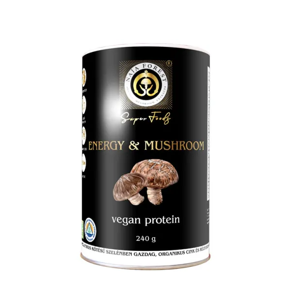 A Naja Forest Energy & Mushroom Vegán Protein 240 g egy egyedülálló növényi alapú fehérje formula, amely a funkcionális táplálkozás és a természetes összetevők erejét egyesíti. Speciálisan kialakított a mentális teljesítmény, a koncentráció és az energia támogatására, miközben az emésztés, a bélflóra és az immunrendszer egészségét is támogatja.