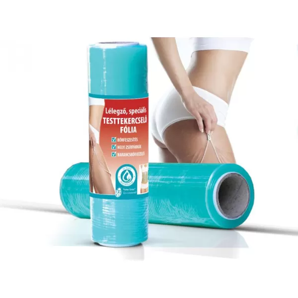Ez a szabadalommal védett, új generációs, speciális testtekercselő fólia előnye a 22 mikronos anyagvastagságában rejlik. Nem állítható elő újrahasznosított műanyagból, így az allergia is kizárt. A fólia nagy levegőzést enged a bőrnek, és szövetszerkezete nagy teherbírású, könnyen tapad az anyaggal borított testrészre. Emellett hatékony hőtermelést biztosít, amely a hatóanyagokat mélyebb rétegekbe préseli.