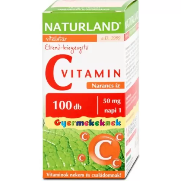 A Naturland C-vitamin 50mg narancs ízű rágótabletta kifejezetten gyerekek számára készült. A termék 100 darabot tartalmaz, így hosszabb időn keresztül biztosítja a szükséges C-vitamin bevitelét.