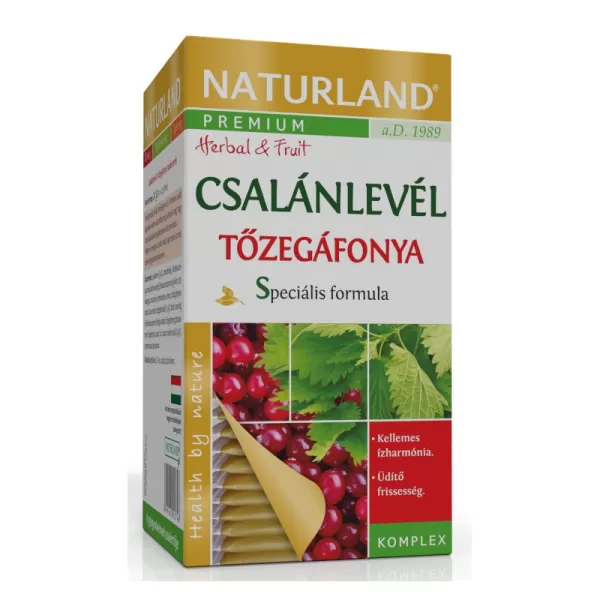 Csalánlevél (50%), almatörköly, hibiszkuszvirág, alma, bíbor kasvirág (Echinacea purpurea) gyökér, csipkebogyó, narancshéj, természetes aroma (tőzegáfonya aroma, koncentrált tőzegáfonyalé) (0,5%), bíbor kasvirág (Echinacea purpurea) virágos hajtás, tőzegáfonyás granulátum (tőzegáfonya, cukor, bíz, rizspor, növényi olaj)(0,5%), szederaroma, eperaroma.
