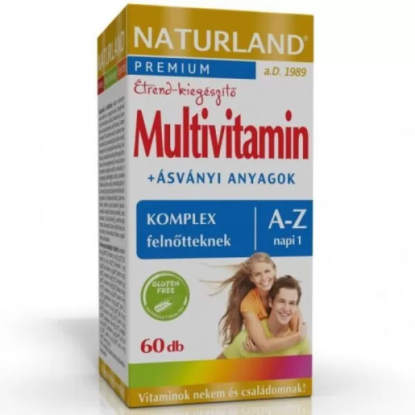 A-vitamin: 800 µg (100%*), B1-vitamin: 1,4 mg (127,3%*), B2-vitamin: 1,6 mg (114,3%*), B6-vitamin: 2 mg (142,9%*), B12-vitamin: 1 µg (40%*), biotin: 150 µg (300%*), C-vitamin: 60 mg (75%*), D-vitamin: 5 µg (100%*), E-vitamin: 10 mg (83,3%*), folsav: 200 µg (100%*), K-vitamin: 30 µg (40%*), niacin: 18 mg (112,5%*), pantoténsav: 2 mg (142,9%*), cink: 7,5 mg (75%*), foszfor: 125 mg (17,9%*), jód: 150 µg (100%*), kalcium: 162 mg (20,3%*), króm: 25 µg (200%*), magnézium: 100 mg (26,7%*), mangán: 2,5 mg (125%*), molibdén: 25 µg (200%*), réz: 700 µg (70%*), szelén: 25 µg (45,5%*), vas: 14 mg (100%*), lutein: 250 µg.