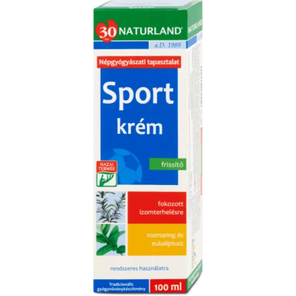Naturland Sport krém 100 ml tradicionális gyógynövény készítmény, melynek rendszeres használata különösen fokozott izomterhelésnél javasolt, mint például sportolás, edzés vagy túrázás.